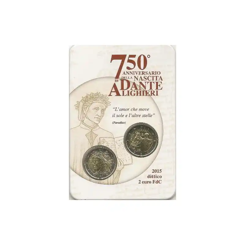 2 Euro Italië 2015 750e geboortedag van Dante Alighieri. in coincard samen met de gewone 2 euro.