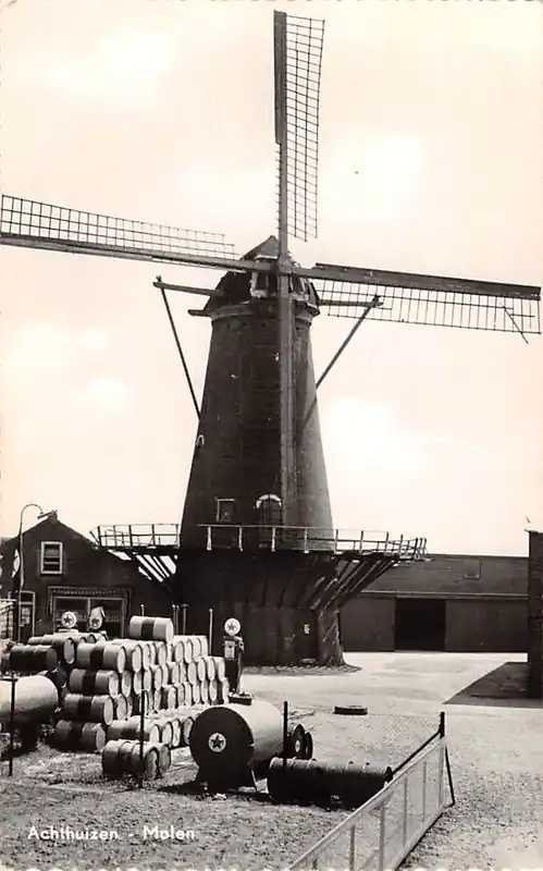 Uitgave Smeets-Pollemans, Achthuizen. Gelopen ansichtkaart met postzegel en stempel. Licht knikje rechts van midden.