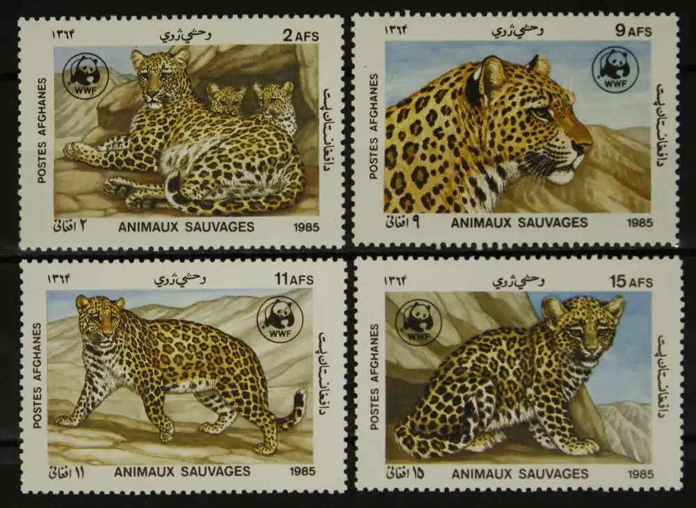 Afghanistan 1985, Michel 1453-1456, Natuurbescherming (WNF): Luipaarden, complete postfrisse serie / MNH