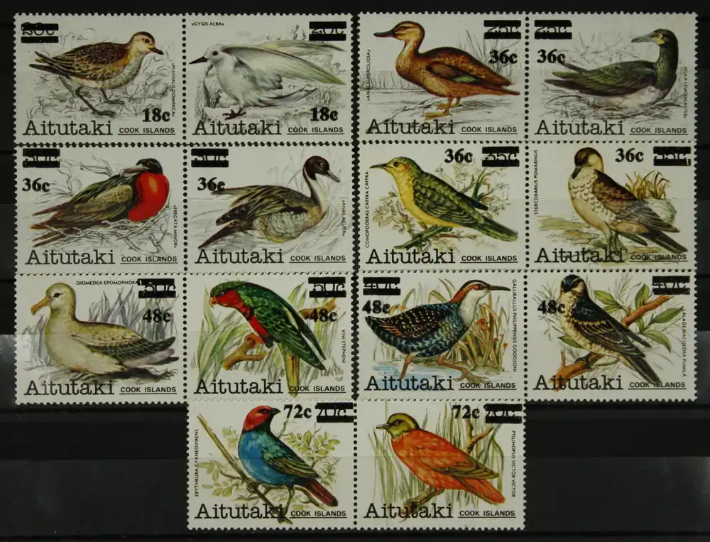 Aitutaku 1983, Michel 477-490, Vogels, Zegels met opdruk, complete postfrisse serie in paren / MNH