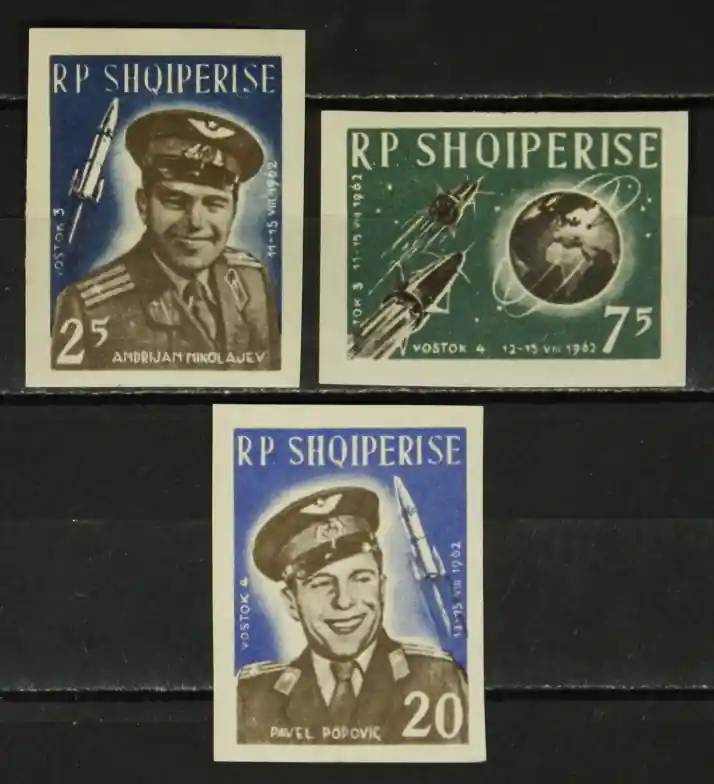 Albanië 1963, Michel 731-733, Ruimtevaart: Groepsvlucht Wostok 3 en 4, complete ongetande postfrisse serie / MNH