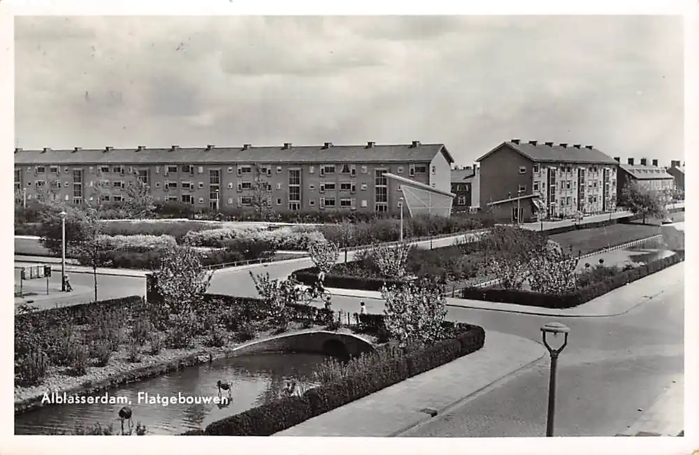 Uitg. Fa. Bakhuizen, Alblasserdam. Gelopen ansichtkaart met postzegel en stempel 1957.