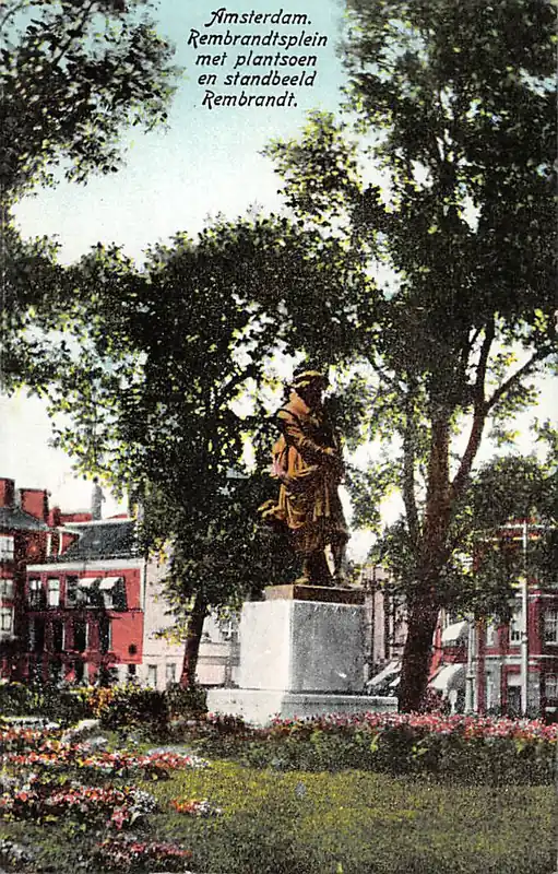 Amsterdam Rembrandtsplein met plantsoen en standbeeld Rembrandt 1928 HC21341 Ostatnia szansa