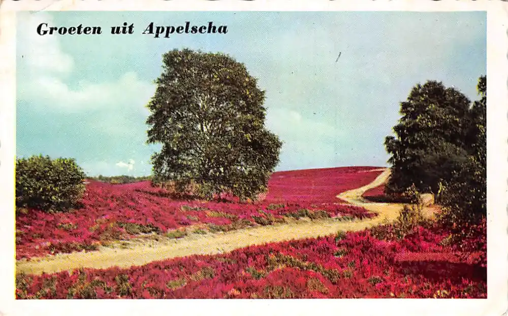 MEB. Gelopen ansichtkaart met postzegel en stempel 1959. Miniem knikje wit bovenhoekje links.