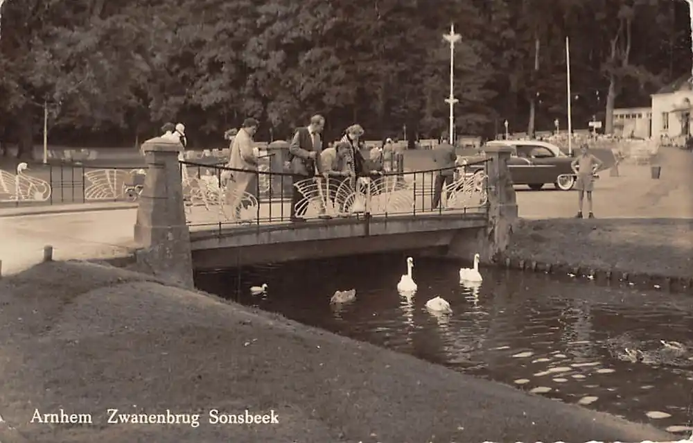 Uitg. L.A. van Bellekom, Arnhem. Gelopen ansichtkaart met postzegel en stempel Arnhem 1959. Hoekjes gesleten.