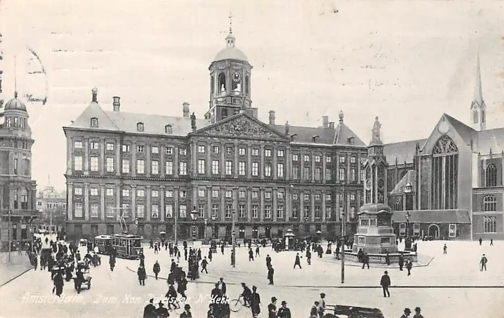 Autentyczny Amsterdam Dam Kon. Paleis en N. kerk 1908 Tram HC21372