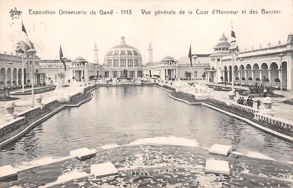 Autentyczny België Gent Exposition Universelle de Gand 1913 Vue Generale de la Cour d\\u2019Honneur et des Bassins Europa HC35863