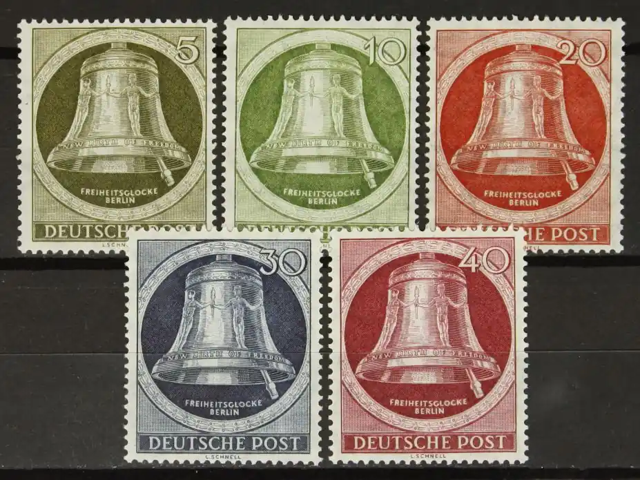 Berlijn (West) 1951, Michel 82-86, Vrijheidsklok (II), (klepel naar rechts), complete serie, postfris / MNH