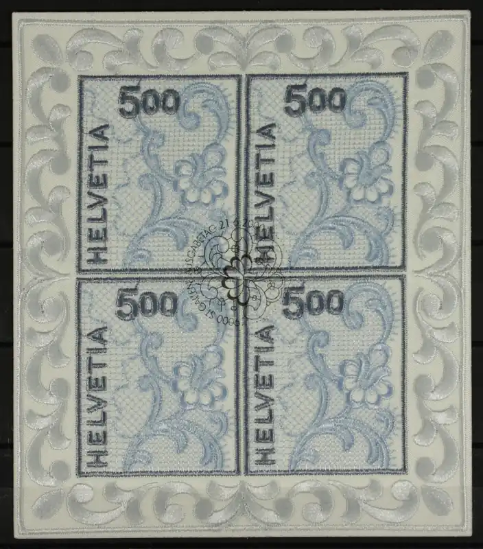 Zwitserland 2000, Michel 1726 in Kleinbogen, Stickerei St. Gallen, gestempeld / usedGestempeld schaars!