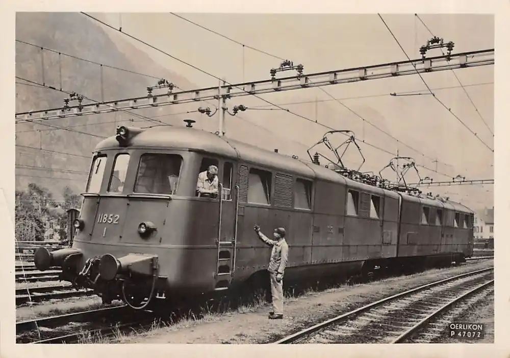 Oerlikon P 47072. 1426. F. Beschreven ansichtkaart met knikken in de linker onderhoek; zie de scans. Formaat 10,4 x 14,7 cm. Locomotive de 12 000 ch en servica sur la ligne du Gotthard.