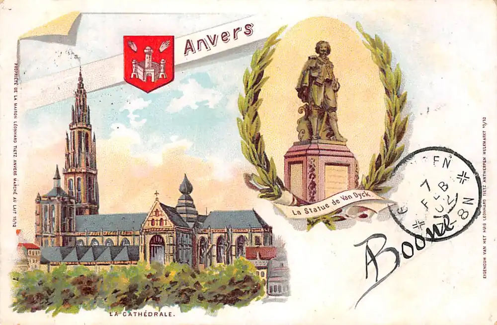 België Antwerpen Anvers Litho La Cathedrale La Statue de Van Dyck 1902 Europa HC56358 Ostatnia szansa