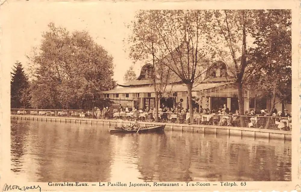 Edit du Pavillon Japonais, Genval. Gelopen ansichtkaart met postzegels en stempel 1933.