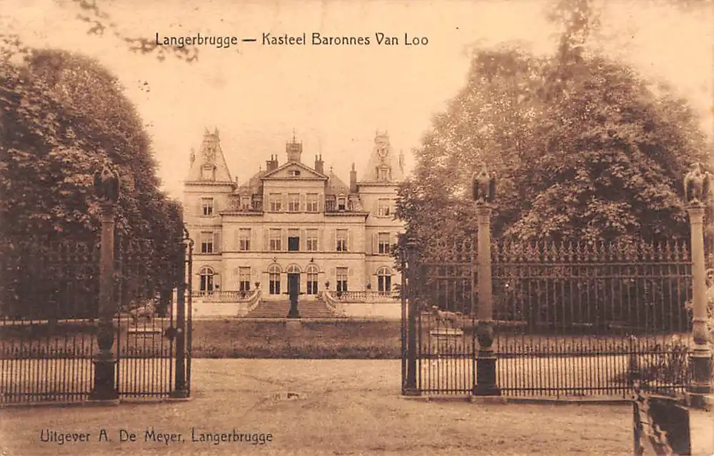 Uitgaver A. De Meyer, Langerbrugge. Gelopen ansichtkaart met stempels; postzegel verwijderd.