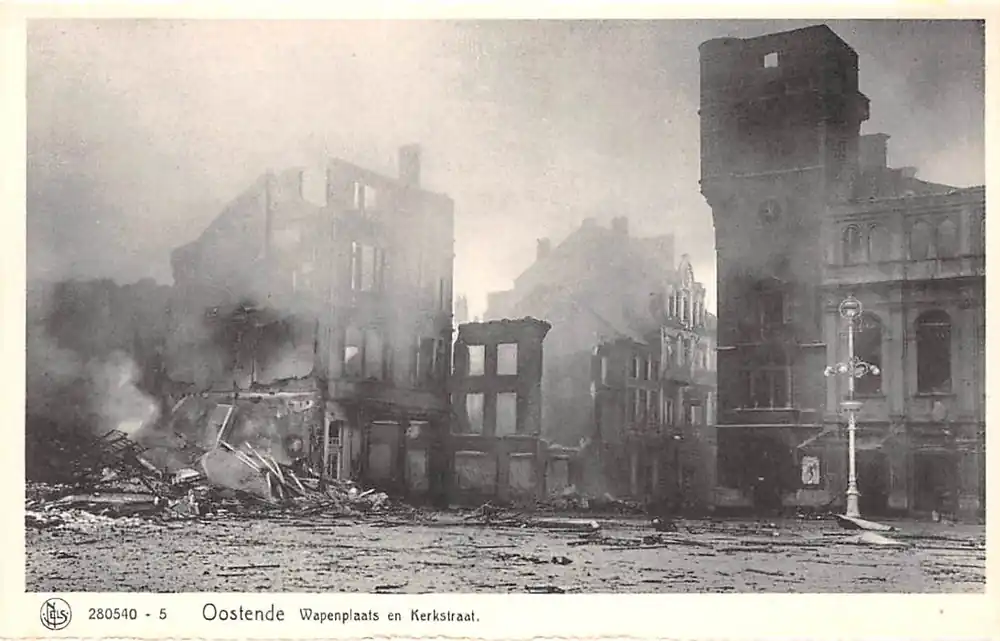 België Oostende WO2 1940-1945 Oorlogsschade Wapenplaats en kerkstraat Europa HC42162 Nowość