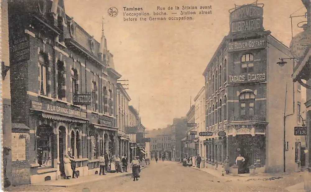 Imprimerie De Roover-Goffart, Tamines. Ongelopen ansichtkaart met de winkel van de uitgever van deze kaart. Kartelrandje links.