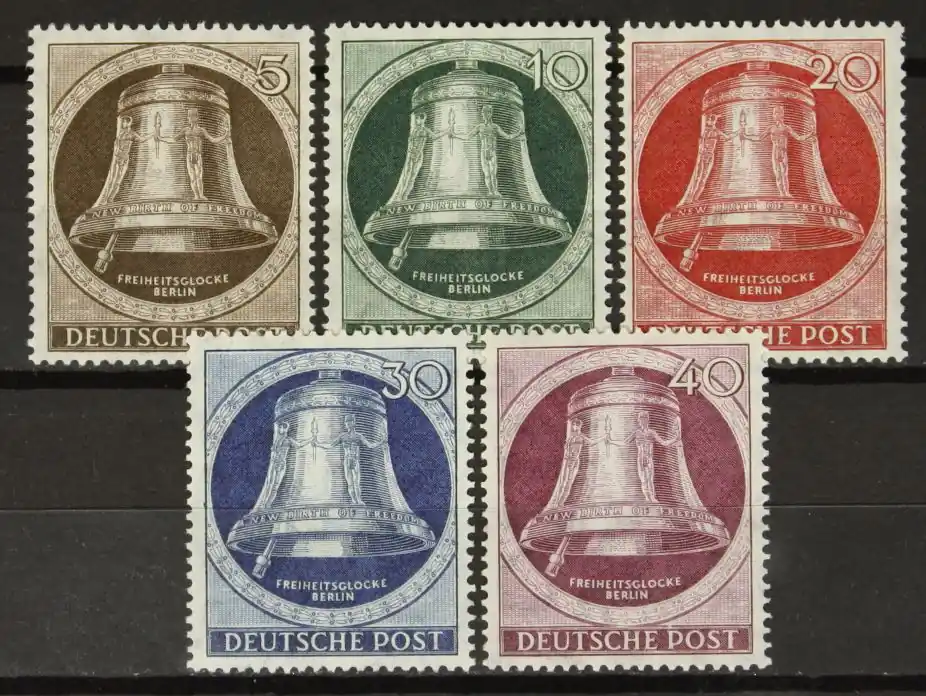 Berlijn (West) 1951, Michel 75-79, Vrijheidsklok (I), (klepel naar links), complete serie, postfris / MNH