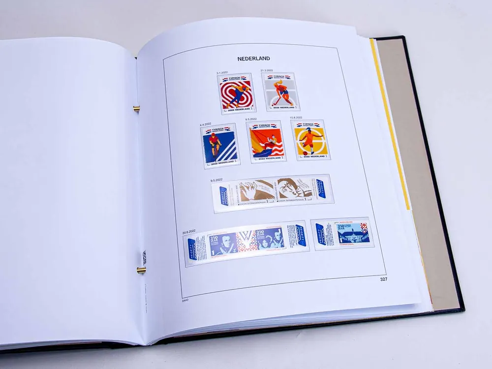 Davo Luxe supplement Nederland 2022 ExtraHet supplement bevat 7 luxe bladen van stevig (170 grs.) papier met heldere klemstroken voor het onderbrengen van de losse zegels uit velletjes van 10 en de losse zegels uit kerstvelletjes.