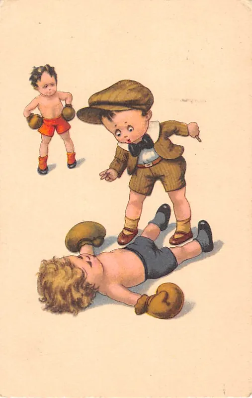 Bezpieczna płatność Fantasie Vintage Boksende kinderen Knock out! Sport Humor Cartoon 1924 HC27662