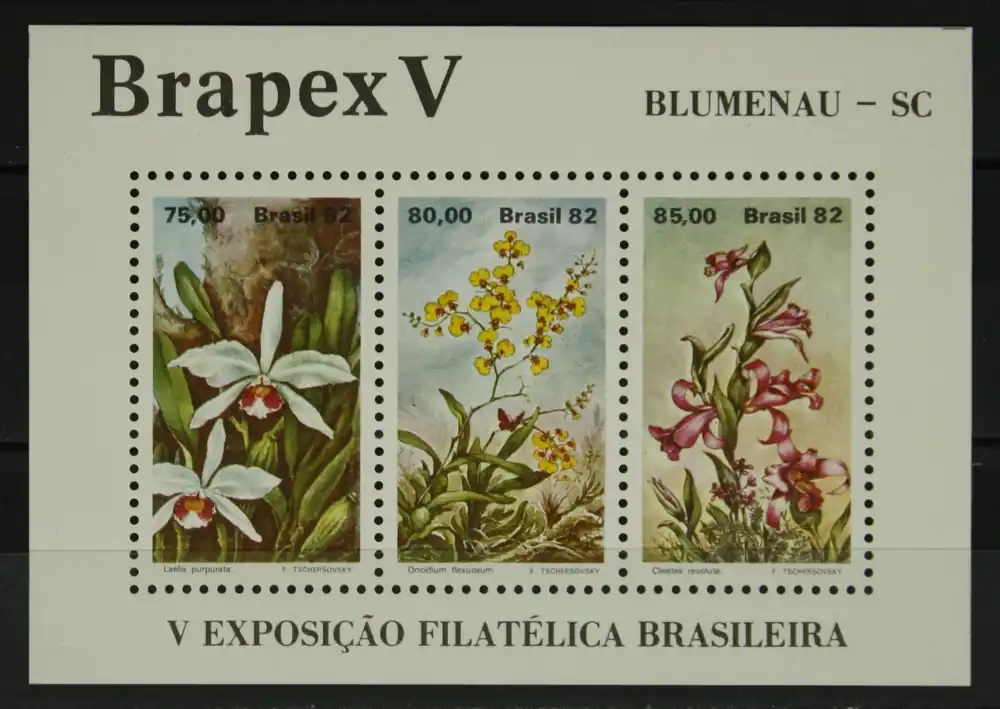 Brazilie 1982, Michel 1890-1892 (Blok 49), Bloemententoonstelling Brapex: Orchideeën, postfris blok / MNH