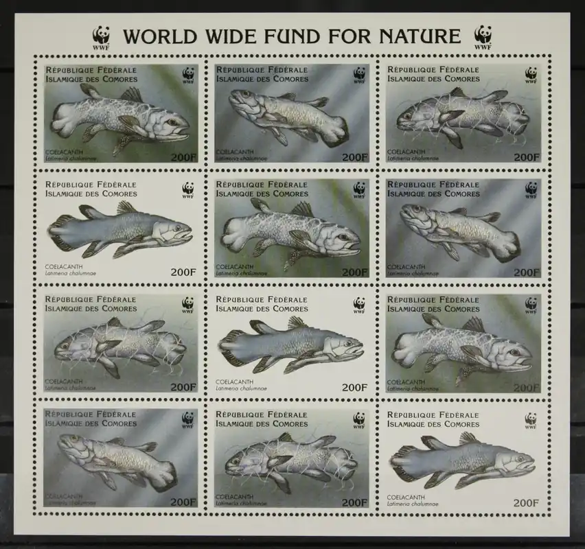 Comoren 1998, Michel 1261-1264, Natuurbescherming (WNF): (Kwastvinnige) Vissen, Postfris velletje / Kleinbogen / MNH