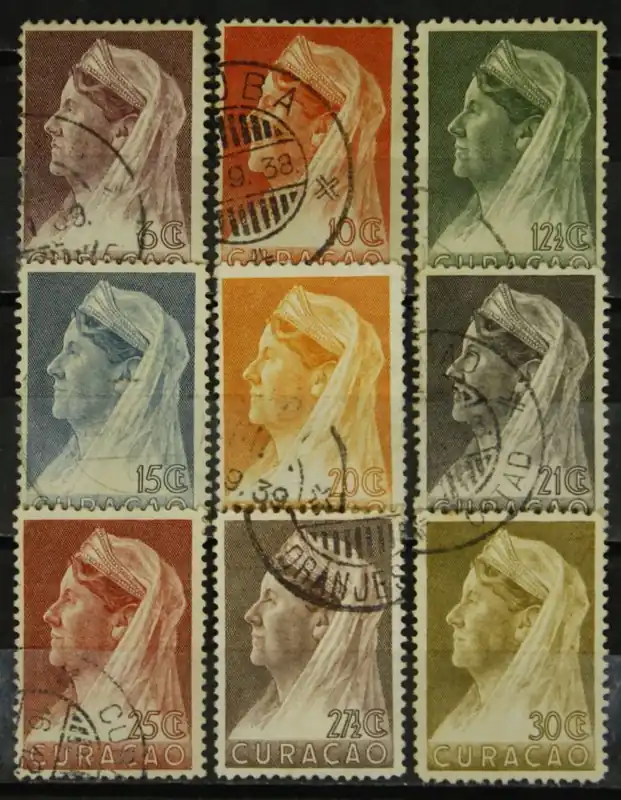 Curaçao 1936, NVPH 126-134, Kon. Wilhelmina met sluier, complete serie, gestempeld/used
