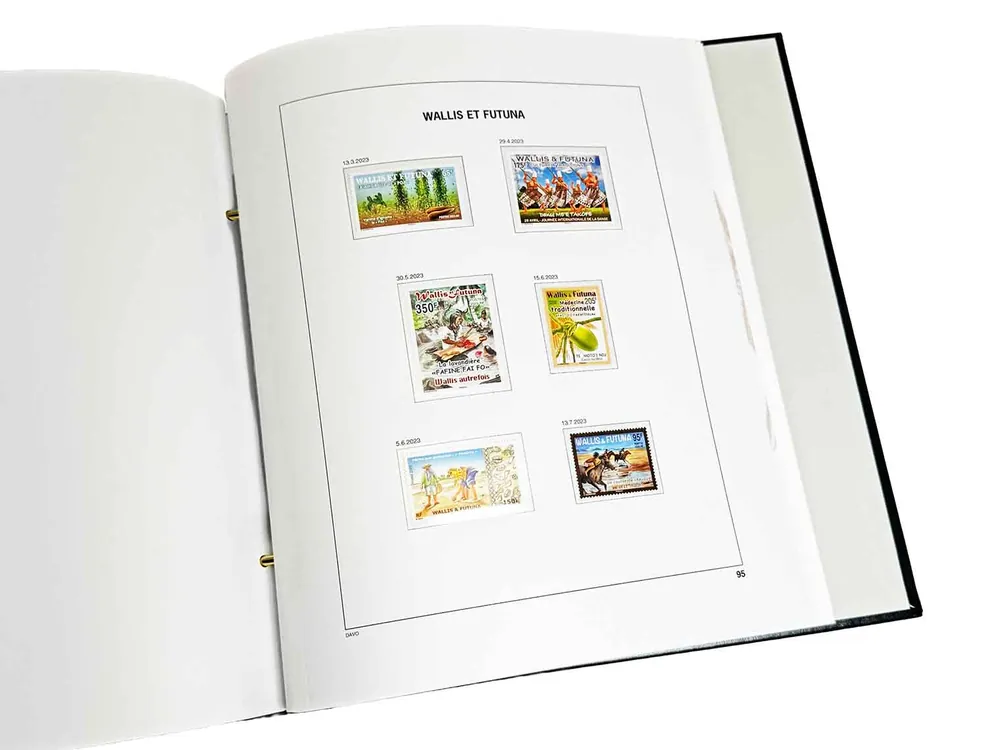 Davo Luxe supplement Wallis & Futuna 2023Luxe bladen (170 grs. stevig papier) met heldere klemstroken.