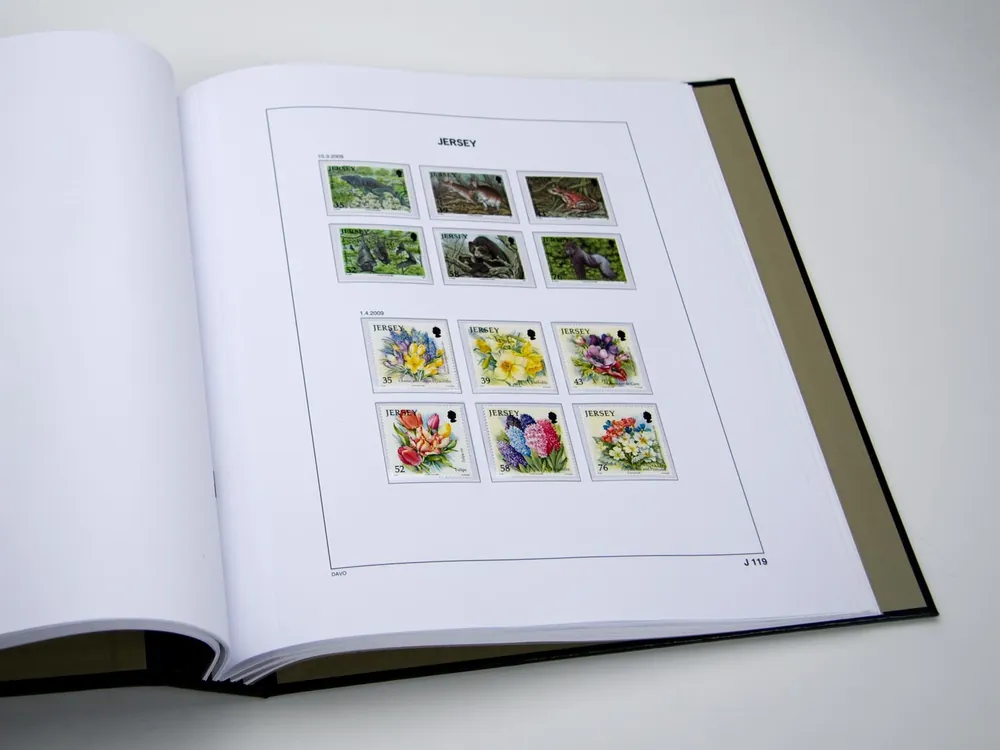 Davo Luxe supplement Jersey 2024Bevat 16 bladen (170 grs. stevig papier) met heldere klemstroken. Bladnrs. J 225 t/m J 232, JB 127 t/m JB 133, PG11.