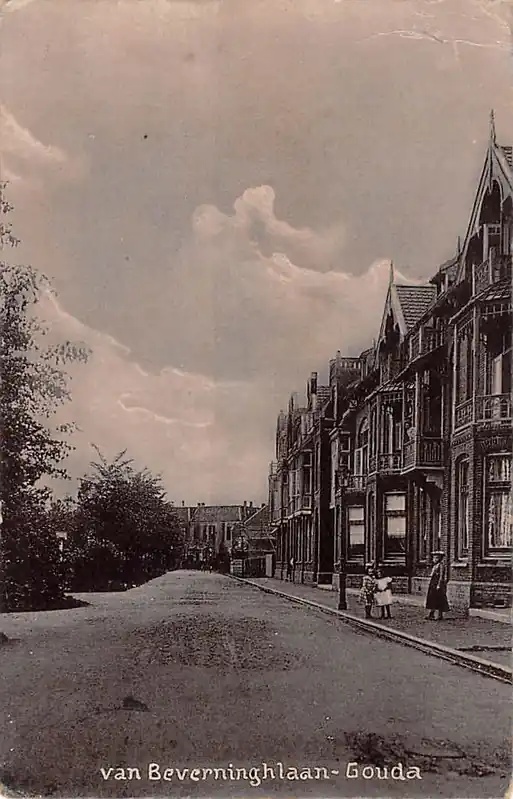 Uitgave K. Wessels, Gouda. Gelopen ansichtkaart met postzegel en stempels 31-12 1908 en 01-01-1910. Hoekjes gebruikt.