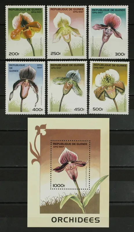 Republiek Guinee 1997, Michel 1624-1630, Orchideeën, complete postfrisse serie incl. blok / MNH