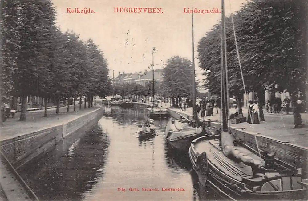 Uitg. Gebr. Brouwer, Heerenveen. Gelopen ansichtkaart met postzegel en stempels 1910.