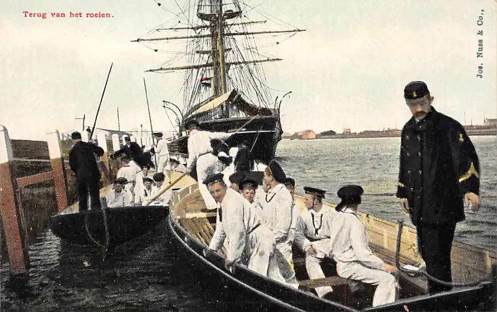 Uitg. Jos. Nuss & Co. Onze Land- en Zeemacht. Serie Opleiding Matrozen No. 8. Mooie ongelopen ansichtkaart.