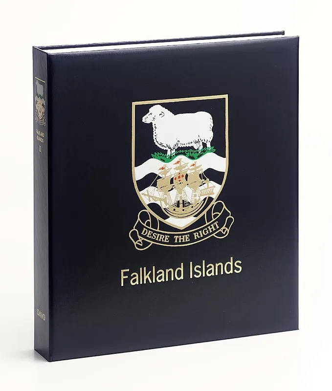 Davo Luxe album Falkland Eilanden deel III (tijdvak 2016-2024)Luxe uitvoering (170 grs. stevig papier) met heldere klemstroken in donkerblauwe gewatteerde band, compleet met cassette.Inclusief het supplement 2024!