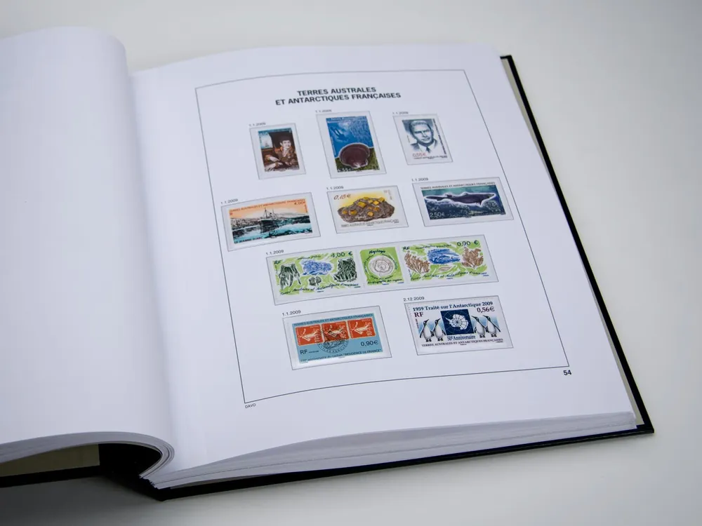 Davo Luxe supplement TAAF (Frans Antarctica) 2024Bevat 6 Luxe bladen (170 grs. stevig papier) met heldere klemstroken. Bladnrs. 91, 92, B74 t/m B77.