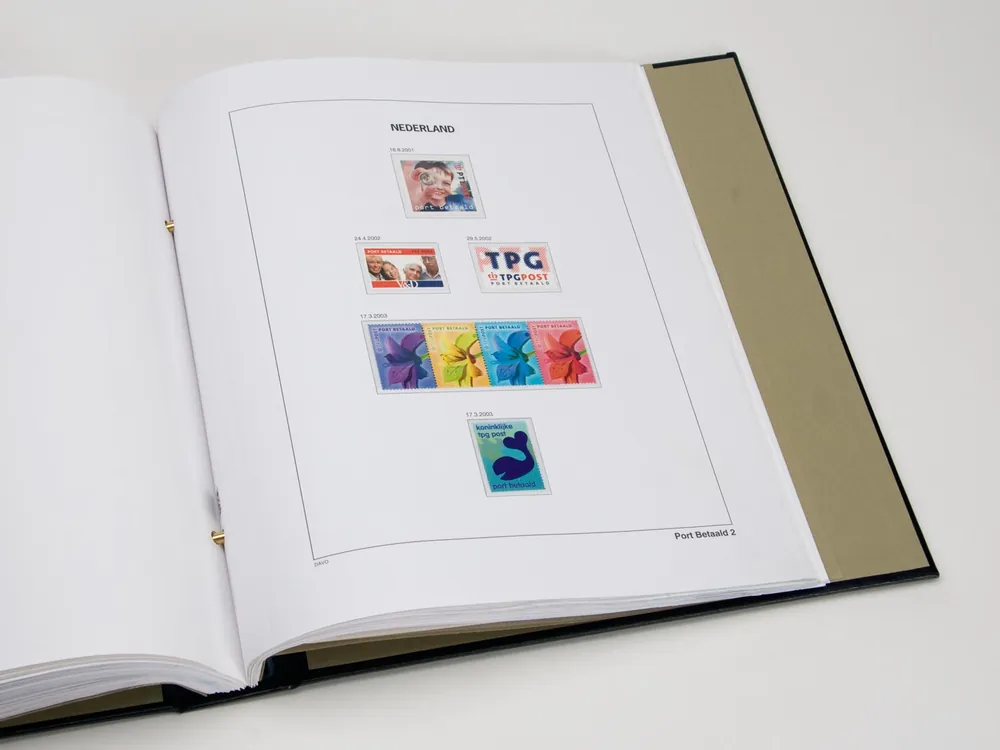 Davo Luxe supplement Nederland Port Betaald 2001-20031 blad van stevig (170 grs.) papier met heldere klemstroken voor het onderbrengen van de Port Betaald zegels die zijn verschenen in het tijdvak 2001-2003.