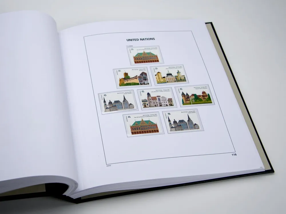 Davo Luxe supplement Verenigde Naties New York 2024Bevat 5 Luxe bladen (170 grs. stevig papier), met heldere klemstroken. Bladnrs. 150, 150a, 151, 152, B74.
