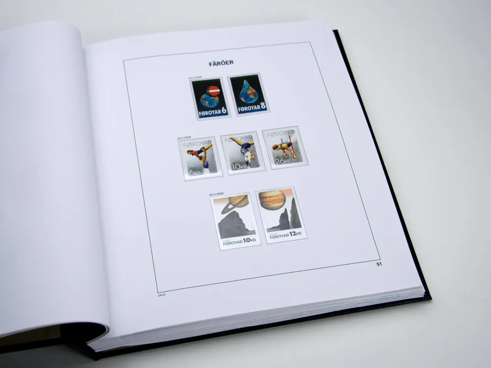 Davo Luxe supplement Färoër 2024 (incl. Boekjes)Bevat 9 luxe bladen (170 grs. stevig papier) met heldere klemstroken. Bladnrs. 2024-info, 1,2, B1, B2, B3, H1, H2, F1 (in kleur).