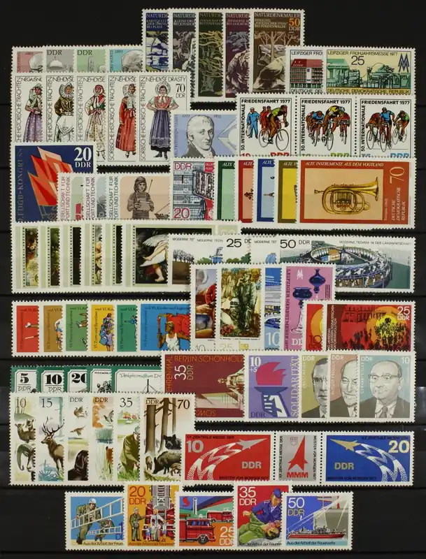 DDR, Jaarset 1977, postfris / MNHInclusief Michel 2216-2218 (strook), Blok 47, Blok 48, Blok 49, Blok 50, Blok 51, 2268-2269 (strook) en 2281-2288 (Kleinbogen)!