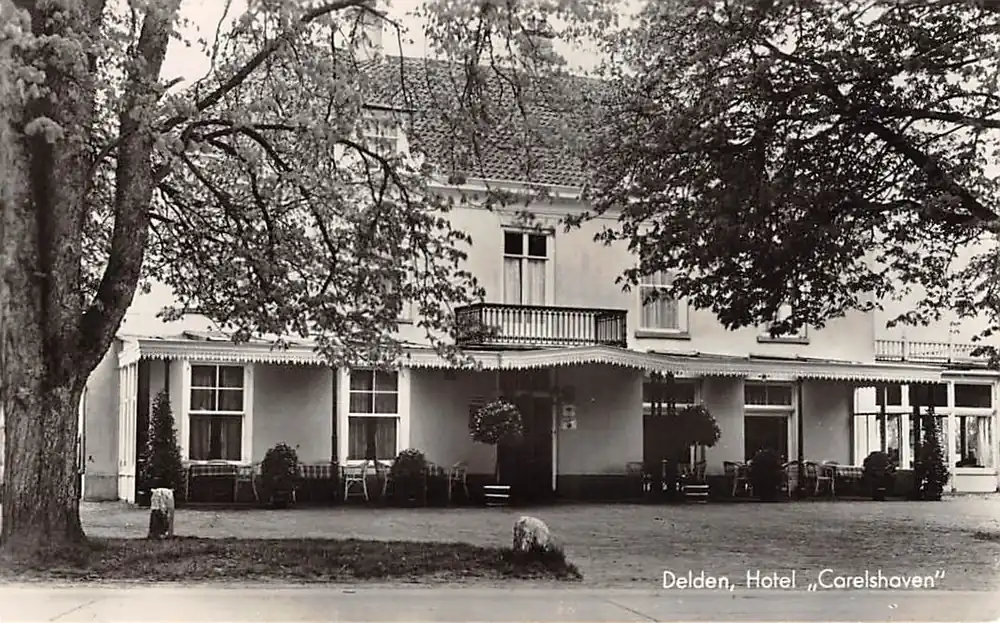 Uitg. Hotel Carelshoven, J.E. Kluvers, Delden. Gelopen ansichtkaart met postzegel en stempel.