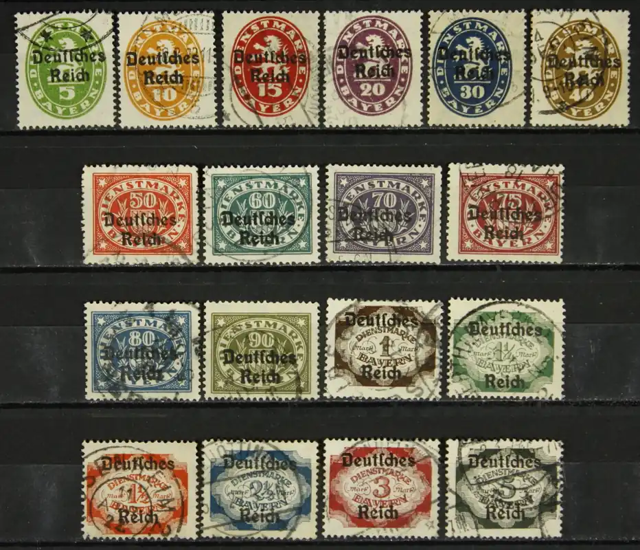 Deutsches Reich 1920, Dienst Michel 34-51, Opdrukzegels, complete gestempelde serie / used