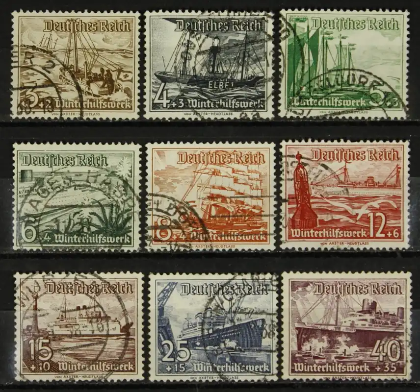 Deutsches Reich 1937, Michel 651-659, Winterhulp: Schepen, complete serie, gestempeld / used