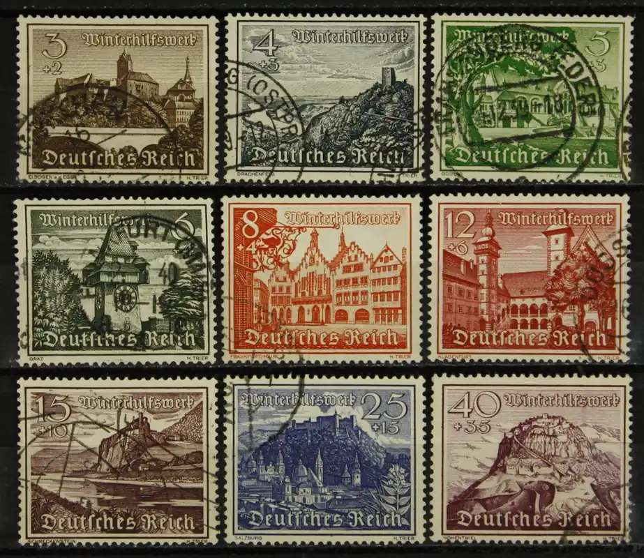 Deutsches Reich 1939, Michel 730-738, Winterhulp: Bouwwerken, complete serie, gestempeld / used