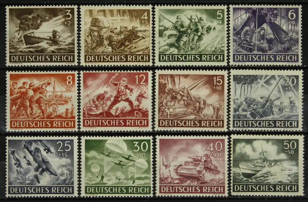 Deutsches Reich 1943, Michel 831-842, Dag van de Wehrmacht: Heldengedenkdag, complete serie, postfris / MNH