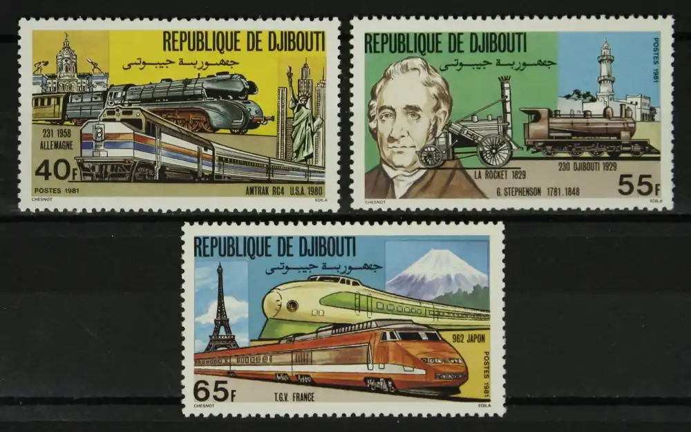 Djibouti 1981, Michel 300-302, 200e Verjaardag van George Stephenson: Treinen, complete postfrisse serie / MNH