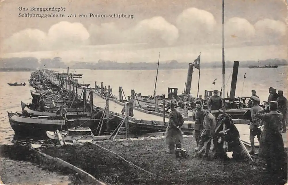 Dordrecht Militair Ons Bruggendepot Schipbruggedeelte van een Ponton-schipbrug Sleepboot Binnenvaart schepen Scheepvaart HC4454 Darmowa dostawa