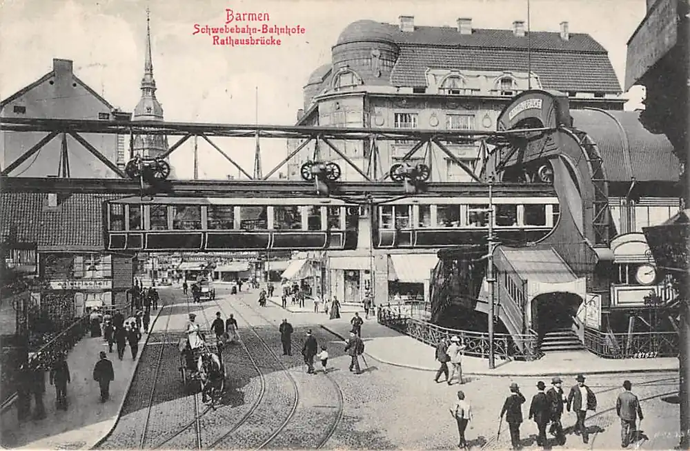 Duitsland Barmen Schwebebahn Bahnhofe Rathausbrucke 1909 Trein Deutschland Europa HC21123 Wysoka jakość