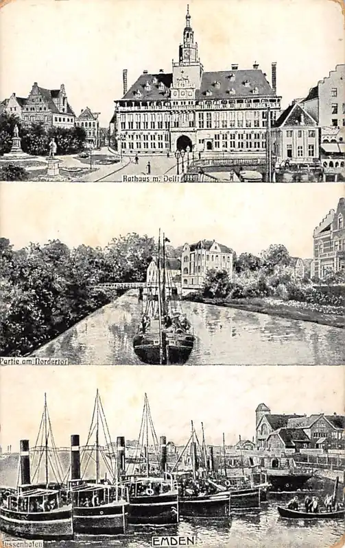 Duitsland Emden Rathaus Partie am Nordertor Hafen Scheepvaart Sleepboot Deutschland Europa HC34547 Zwrot pieniędzy