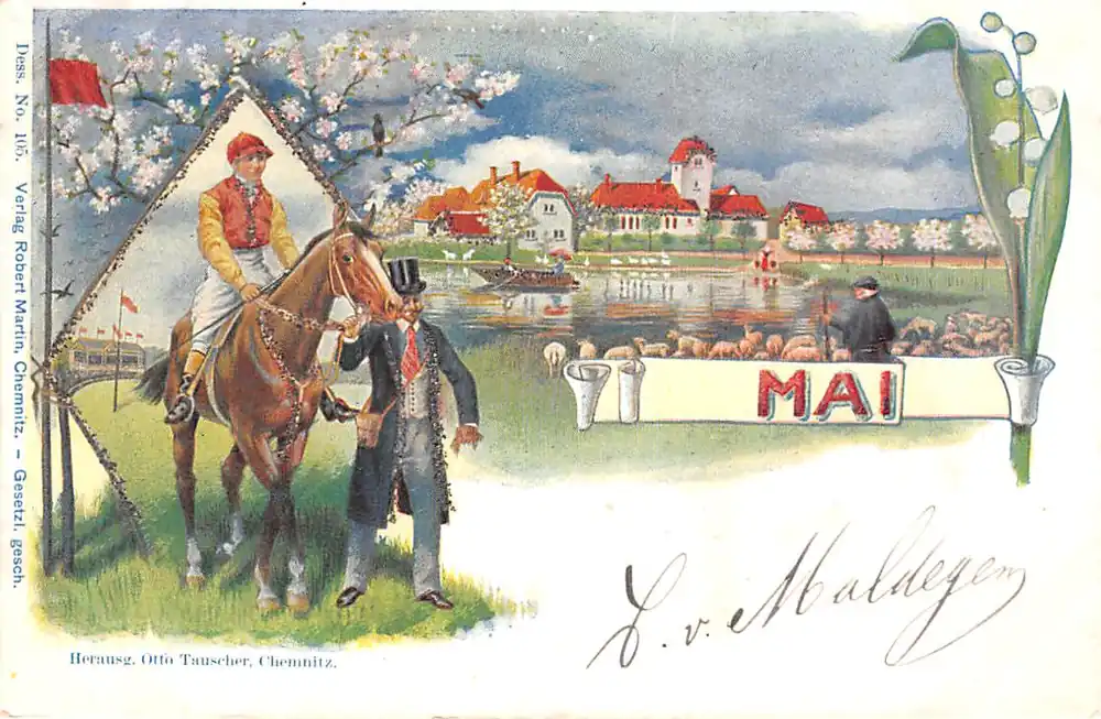 Dess. No. 105. Verlag Robert Martin, Chemnitz. Herausg. Otto Tauscher, Chemnitz. Met glittertjes. Gelopen ansichtkaart met postzegel en stempel 12 Februari 1901. Zie ook de andere maanden!