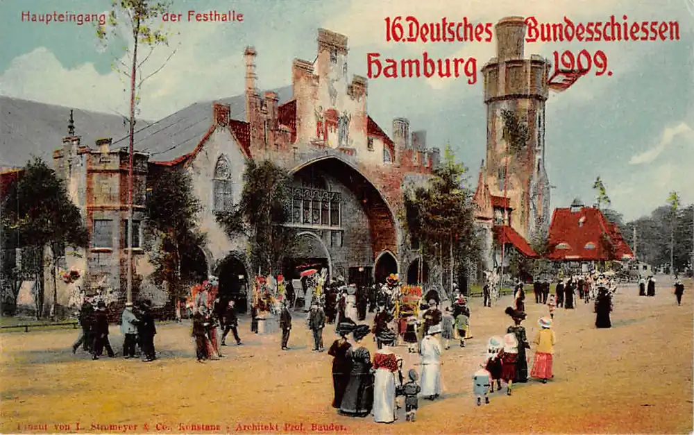 16. Deutsches Bundesschiessen. Officielle Postkarte. Hanburg 1909. Lichtdruck. Knackstedt & Nather, Hamburg. Ongelopen ansichtkaart.