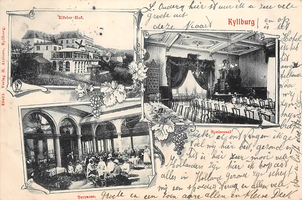 83935. Verlag M. Atzhorn, Kyllburg. Lichte albumvouwtjes in hoekjes. Gelopen ansichtkaart met twee postzegels en drie stempels 1904.