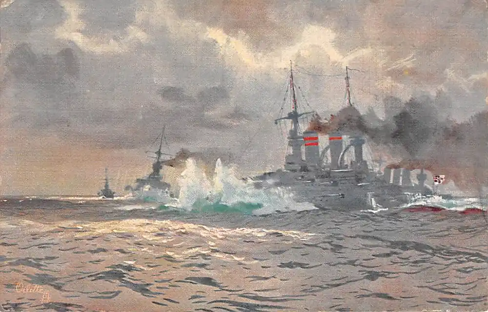 Duitsland Marine Das Linienschiff Mecklenburg bei hoher Fahrt in langer Dunung Scheepvaart Schepen Deutschland Europa HC54980 Darmowa dostawa